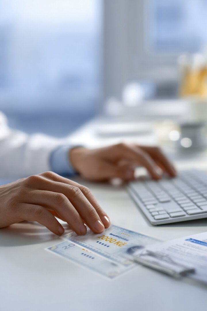 Papírový poukaz DentalBenefit® s jasně uvedenou částkou – zaměstnanec jej uplatní přímo v ordinaci.
