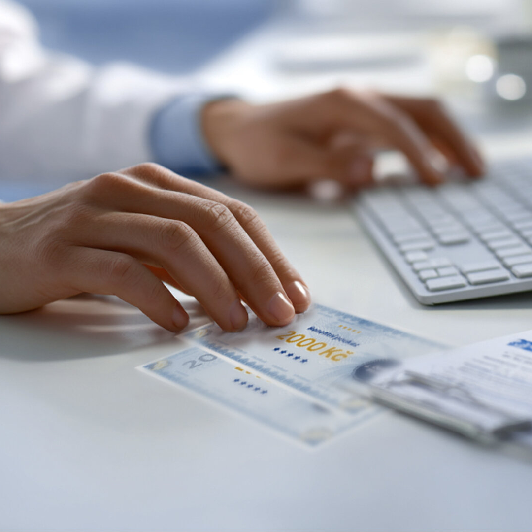 Přijímání poukazů DentalBenefit® je snadné a přehledné. S poukazem se zachází jako s ceninou – každý poukaz má vyznačenou nominální hodnotu v českých korunách. Po přijetí od pacienta jej jednoduše předáte k výměně a DentalBenefit® zajistí jeho proplacení – buď formou hotovosti, nebo převodem na váš účet. Celý proces je rychlý a transparentní, bez zbytečného papírování a složitých procedur.